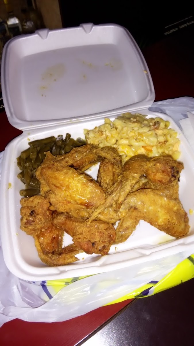 This was my first time here. Marie the bartender was warm and friendly. Drinks were great! The music was popping and the people were friendly. Flat screen TVs all around. Ordered food from a separate area not related to the bar. Parmesan chicken wing platter with fries and green beans. The wings were okay. The green beans were seasoned pretty good.